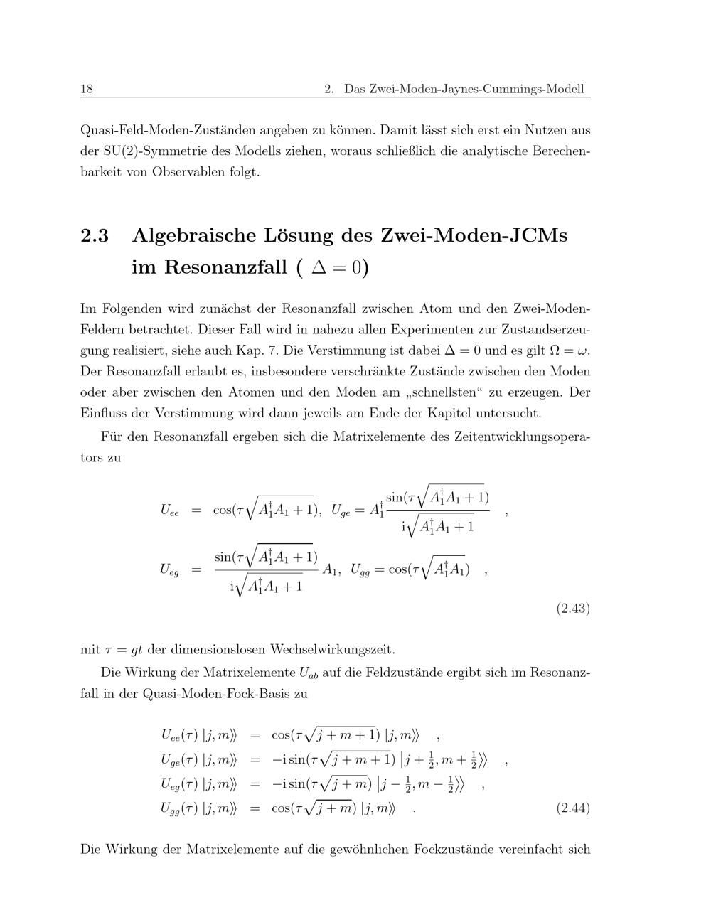 2.3 Algebraische Lösung des Zwei-Moden-JCMs im Resonanzfall ...