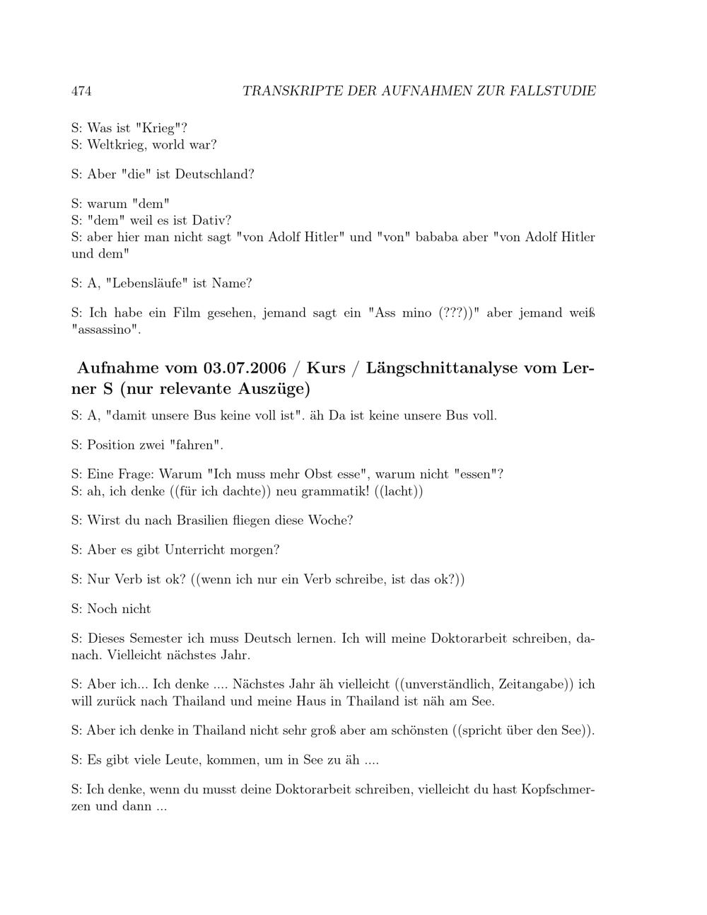 Transkripte der Aufnahmen zur Fallstudie