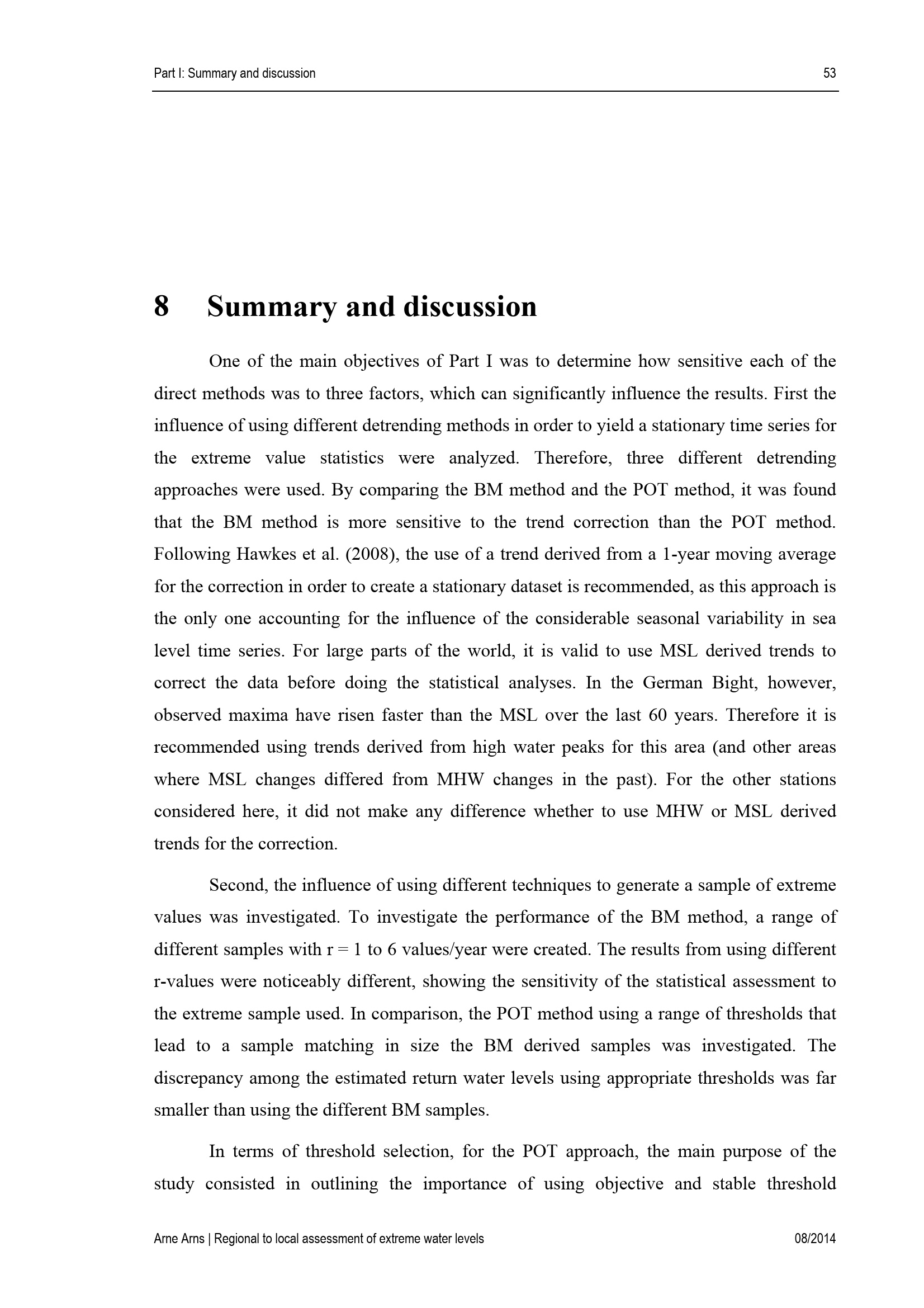 Regional to local assessment of extreme water levels : methods and application to the northern part of the German North Sea coastline