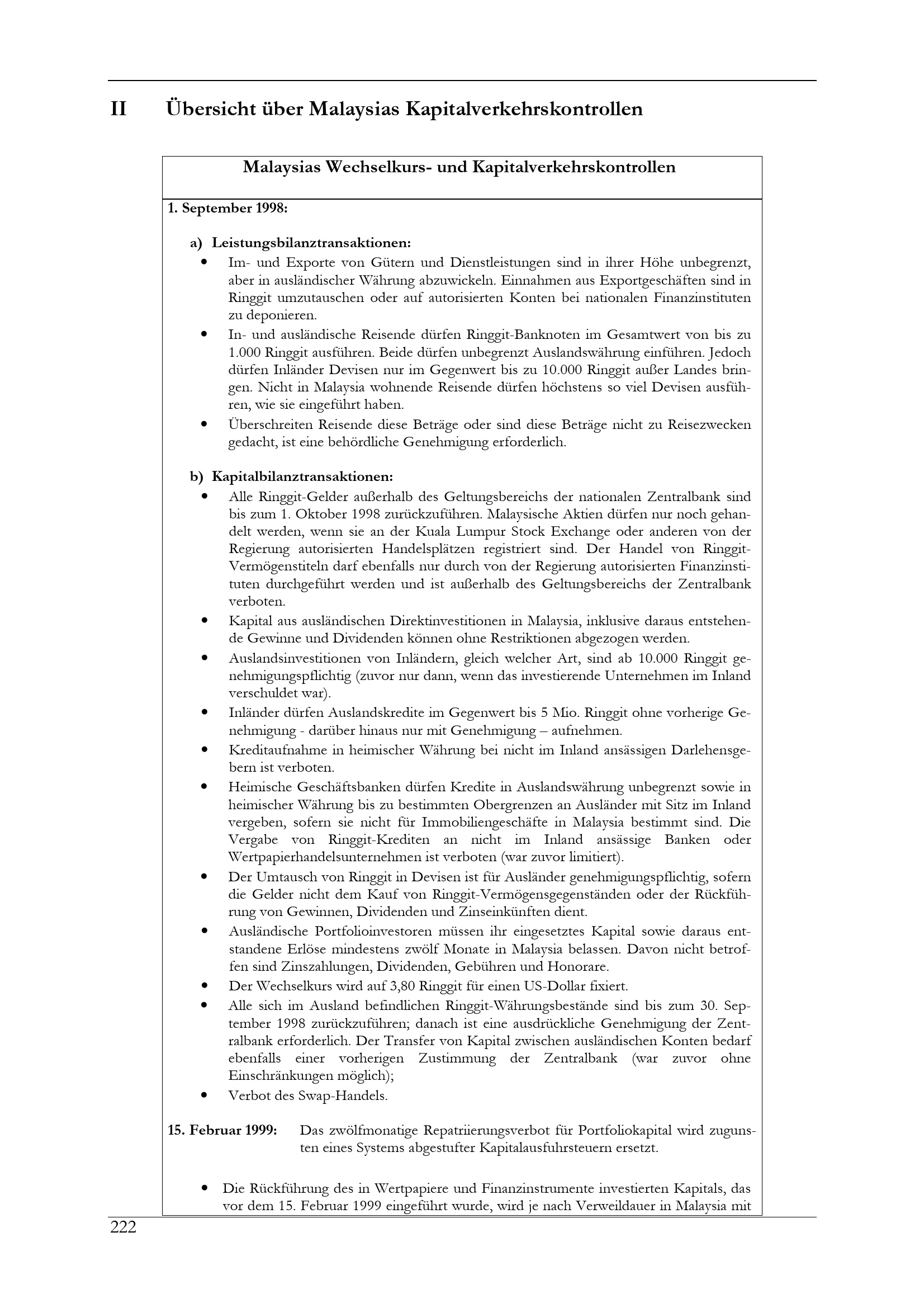II Übersicht über Malaysias Kapitalverkehrskontrollen