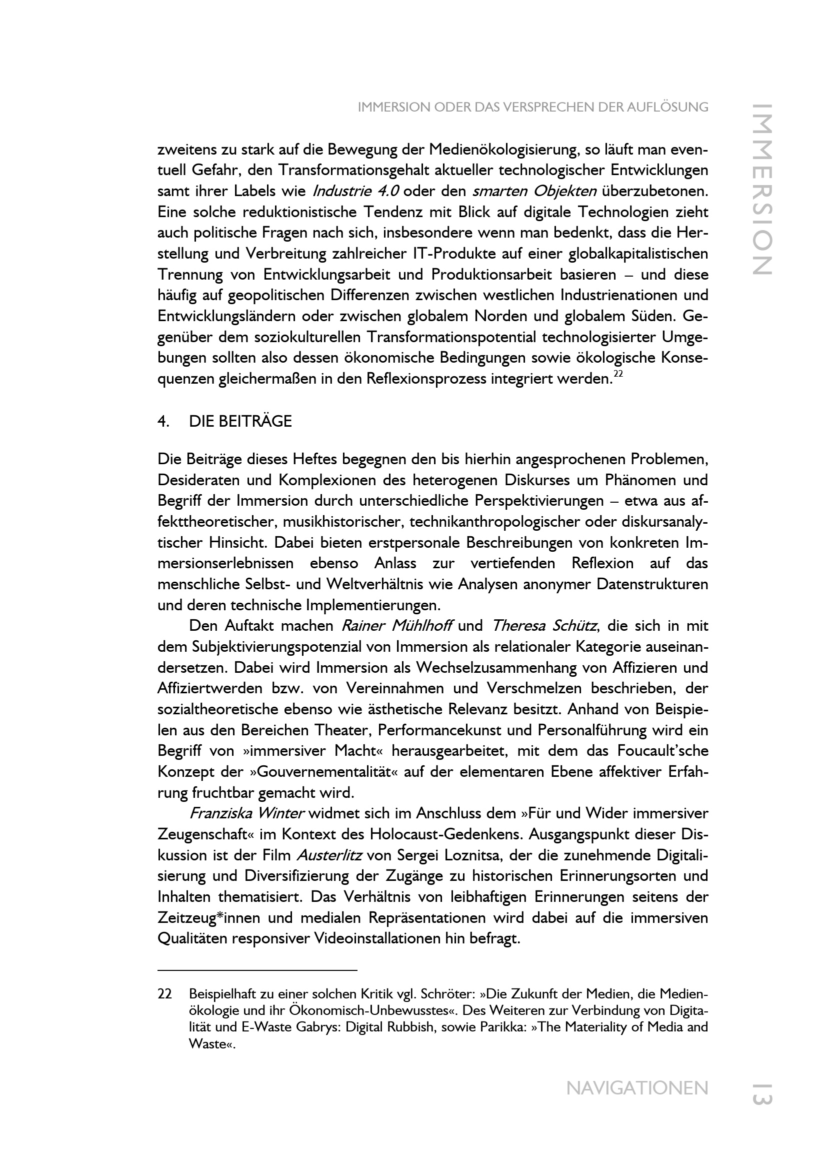 IMMERSION ODER DAS VERSPRECHENDER AUFLÖSUNG : Zur Einführung / DAWID KASPROWICZ UND[...]