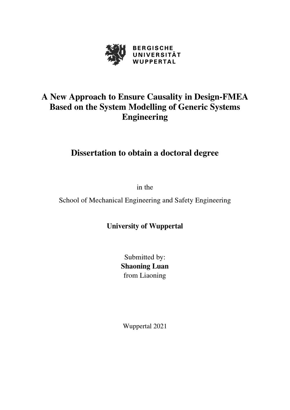 A new approach to ensure causality in Design-FMEA based on the system modelling of generic systems engineering / submitted by: Shaoning Luan
