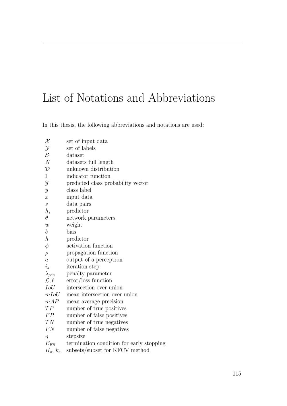 List of Notations and Abbreviations