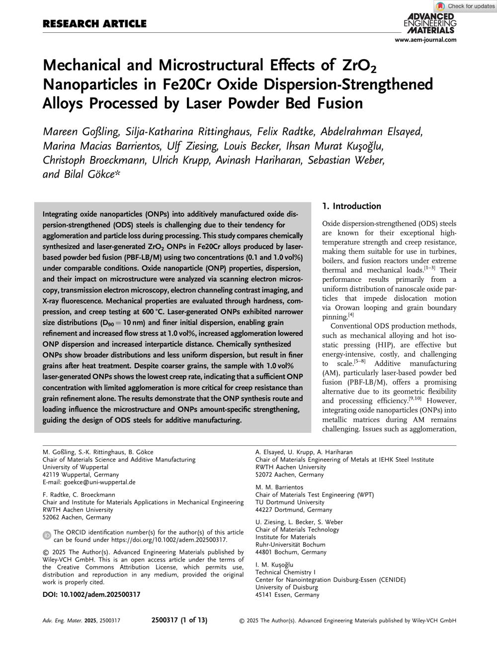 Powder-based additive manufacturing of oxide dispersion-strengthened steels / submitted by: Mareen Goßling from Coesfeld