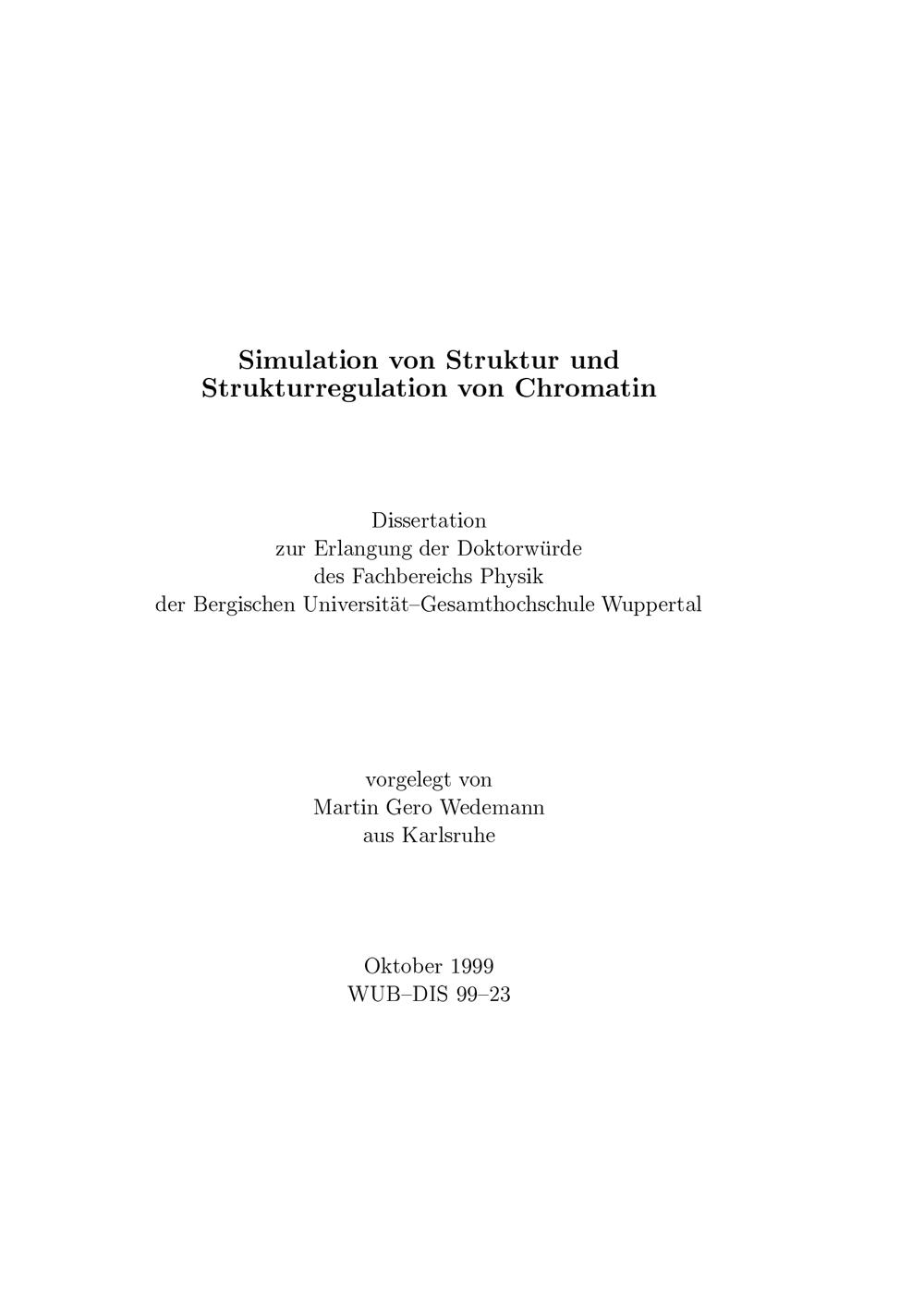 Simulation von Struktur und Strukturregulation von Chromatin / vorgelegt von Martin Gero Wedemann