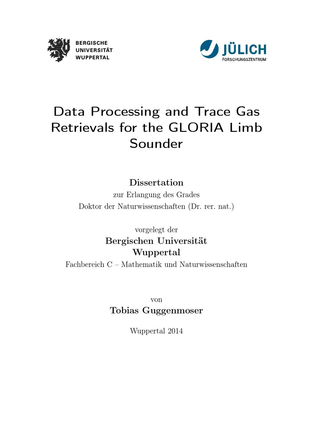 Data processing and trace gas retrievals for the GLORIA limb sounder / von Tobias Guggenmoser