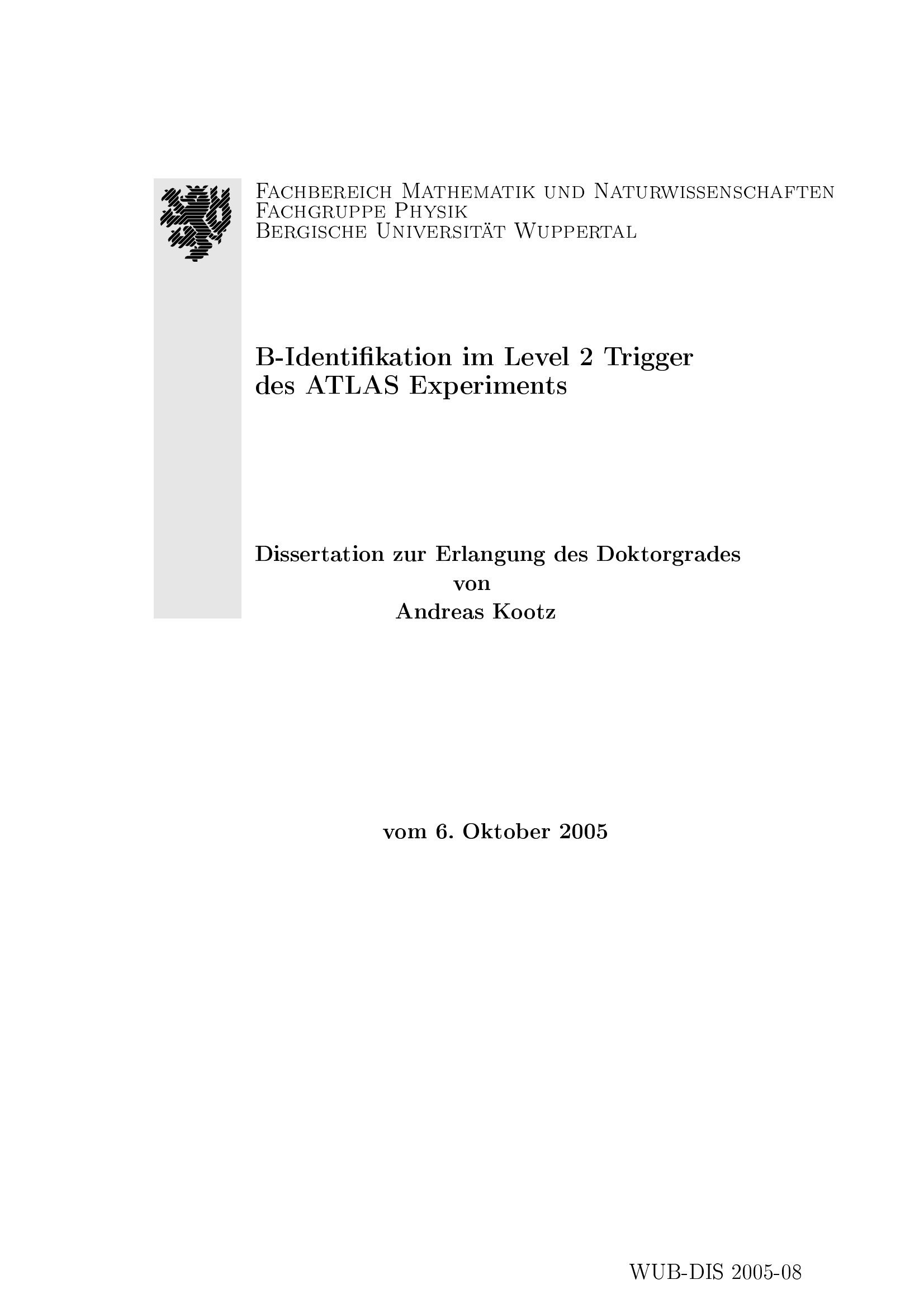 B-Identifikation im Level-2-Trigger des ATLAS-Experiments / von Andreas Kootz