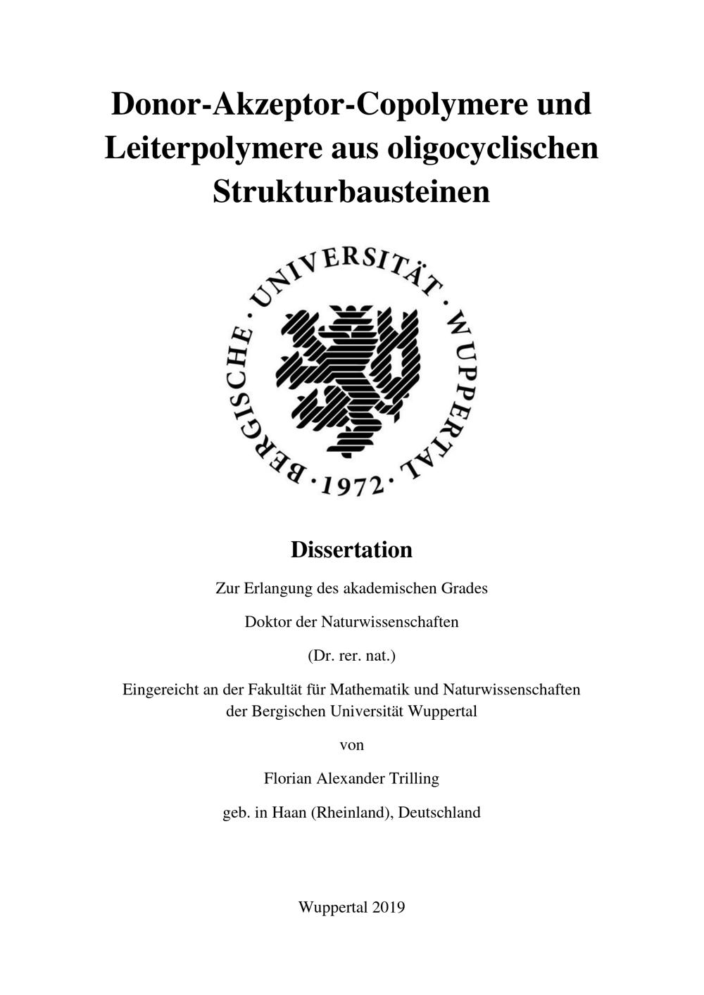 Donor-Akzeptor-Copolymere und Leiterpolymere aus oligocyclischen Strukturbausteinen / von Florian Alexander Trilling