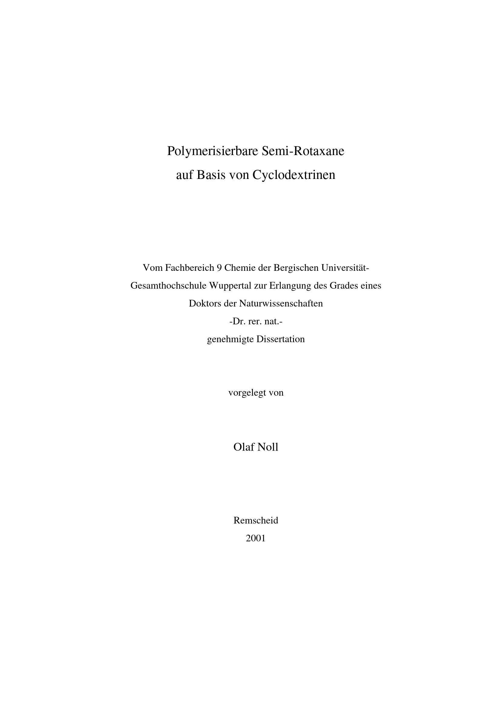 Polymerisierbare Semi-Rotaxane auf Basis von Cyclodextrinen / vorgelegt von Olaf Noll