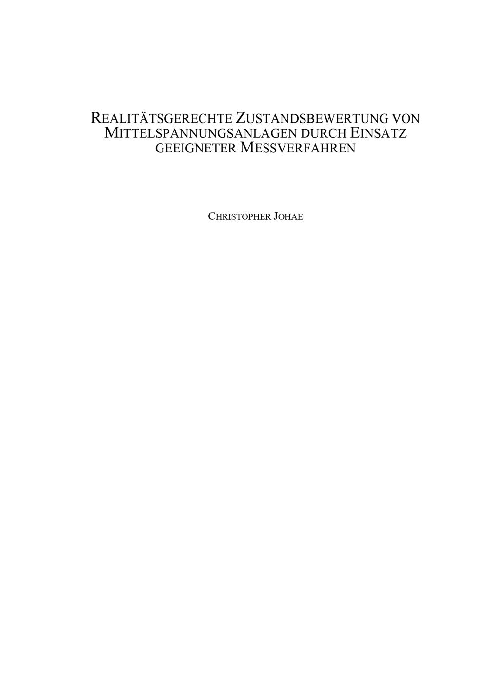Realitätsgerechte Zustandsbewertung von Mittelspannungsanlagen durch Einsatz geeigneter Messverfahren / Christopher Johae