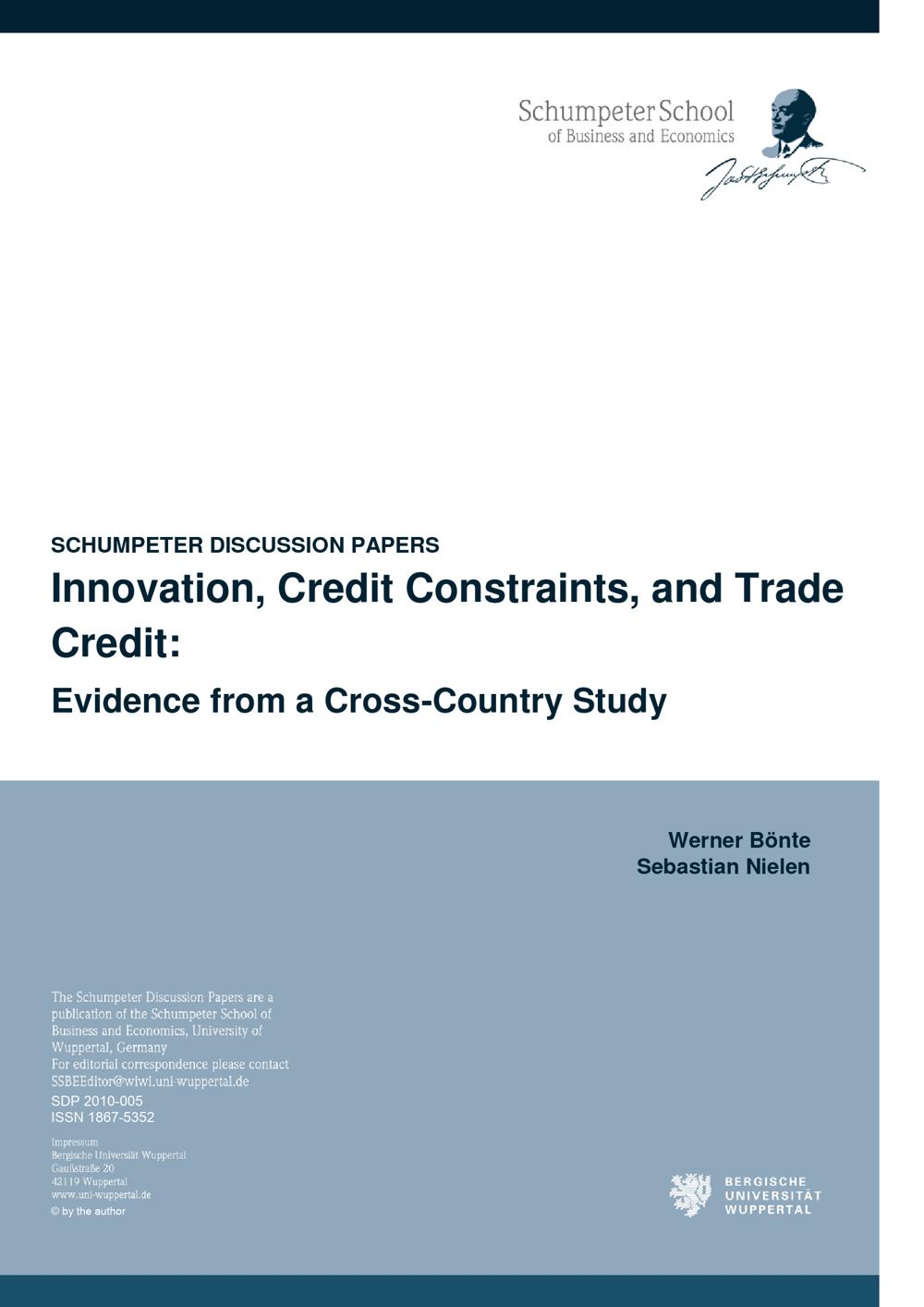 Innovation, credit constraints, and trade credit : evidence from a cross-country study / Werner Bönte ; Sebastian Nielen