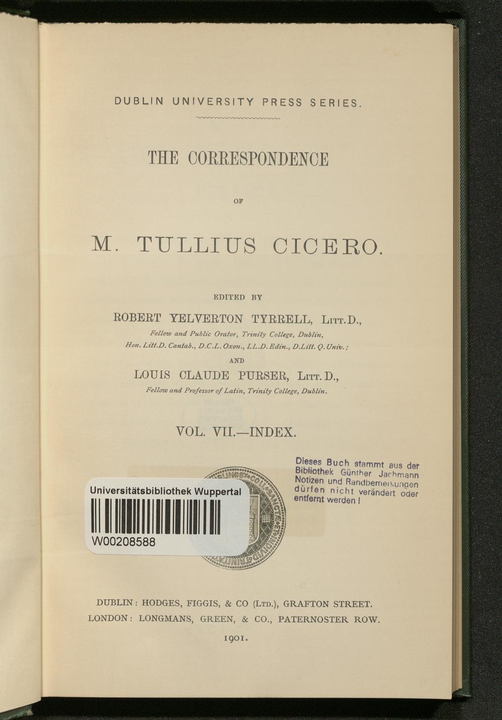 7 (1901) Index / with a rev. of the text, a commentary, and introd. essays by Robert Yelverton Tyrrell ...