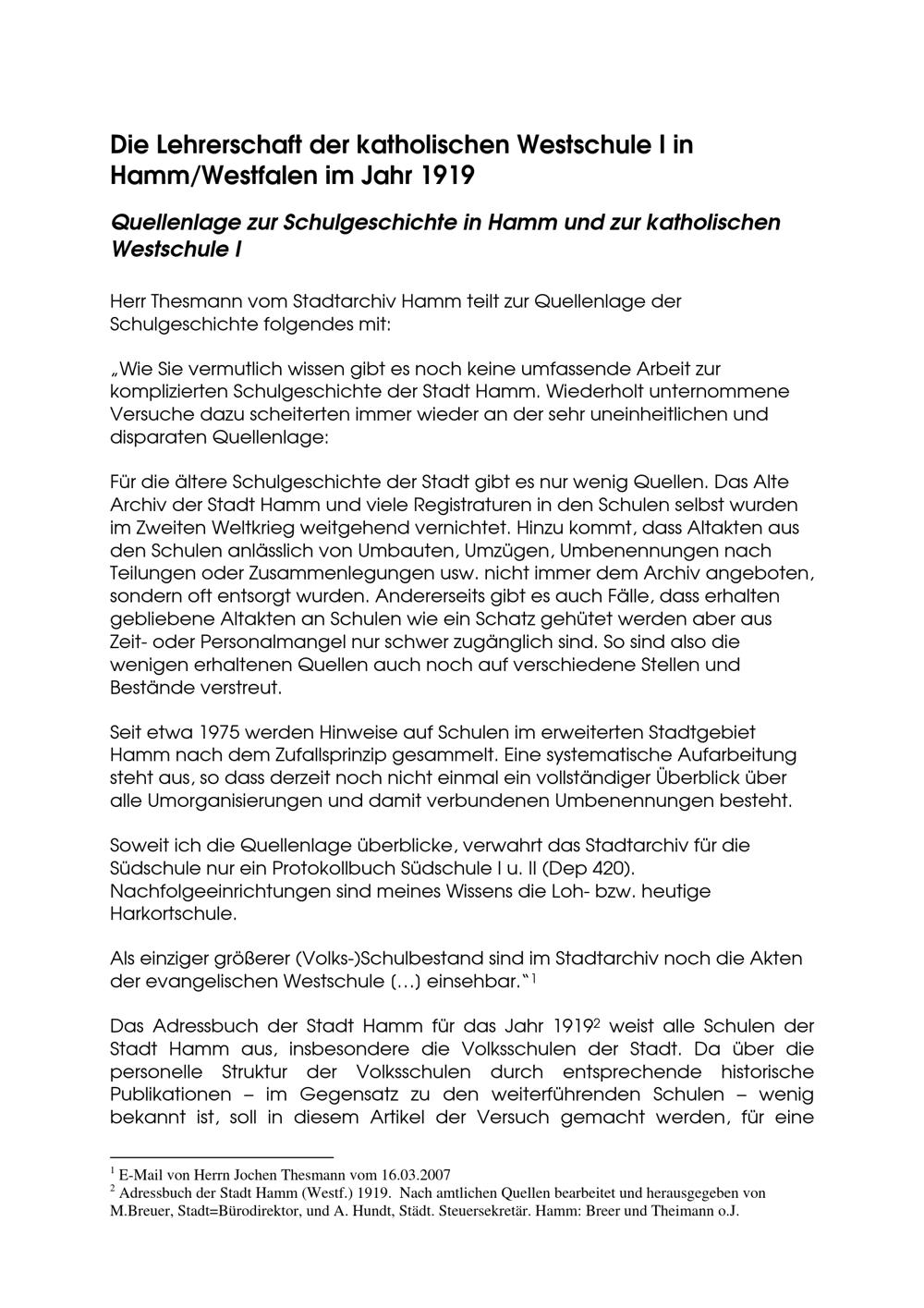 Die Lehrerschaft der katholischen Westschule I in Hamm/Westfalen im Jahr 1919