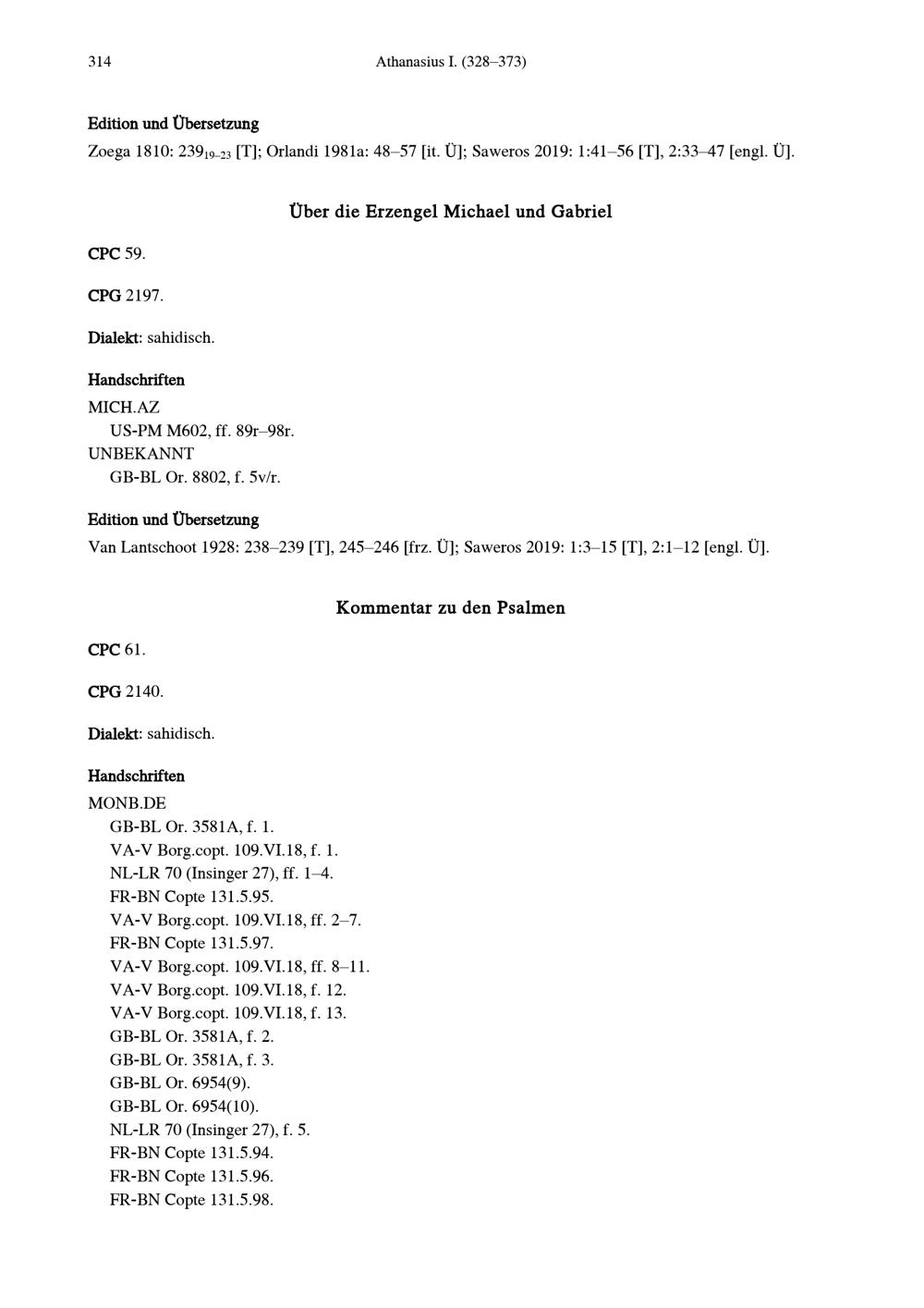 Anhang - Authentische und pseudonyme Werke der alexandrinischen Patriarchen in koptischer[...]