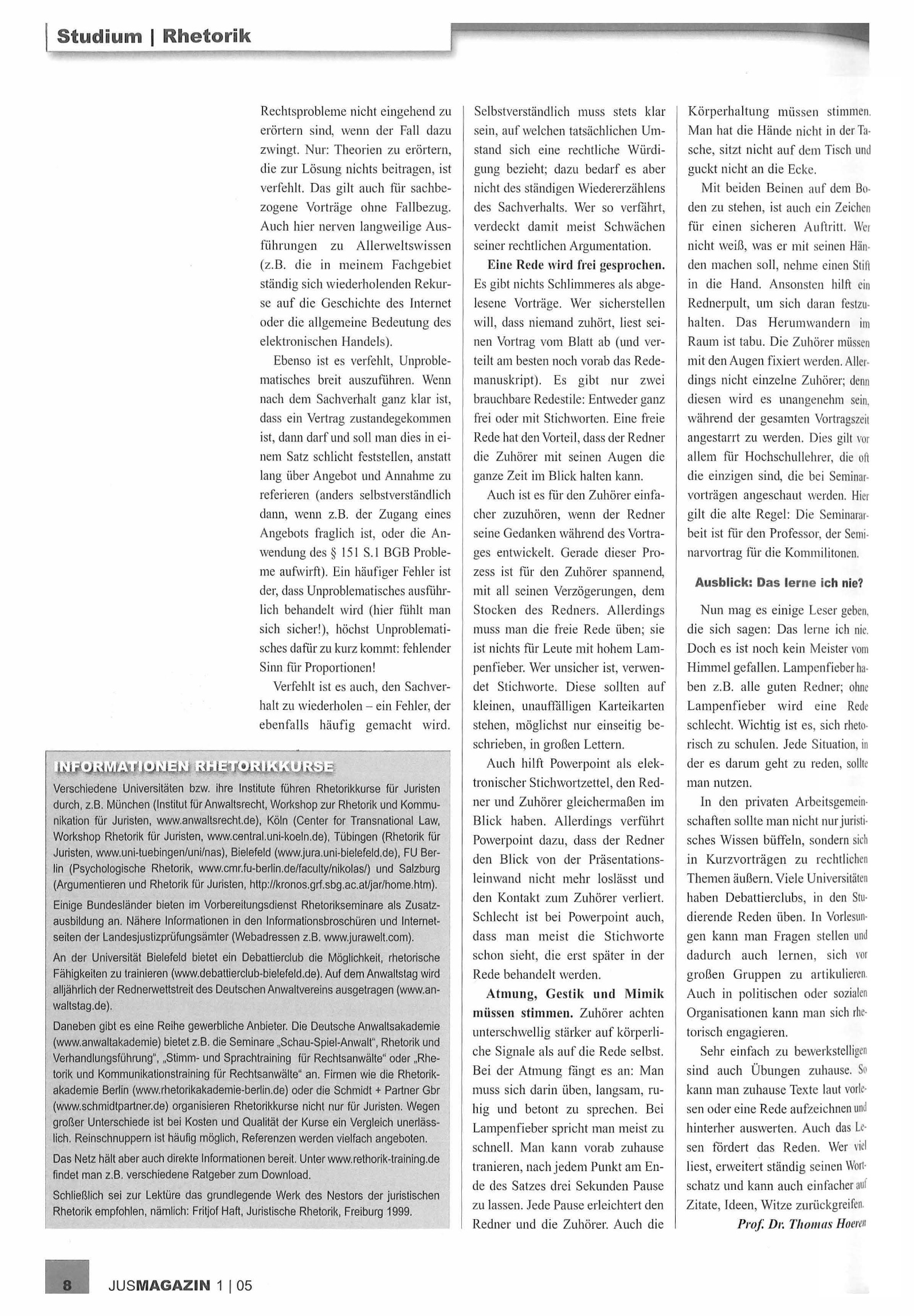 Freie Rede will geübt sein : Rhetorik für Juristen