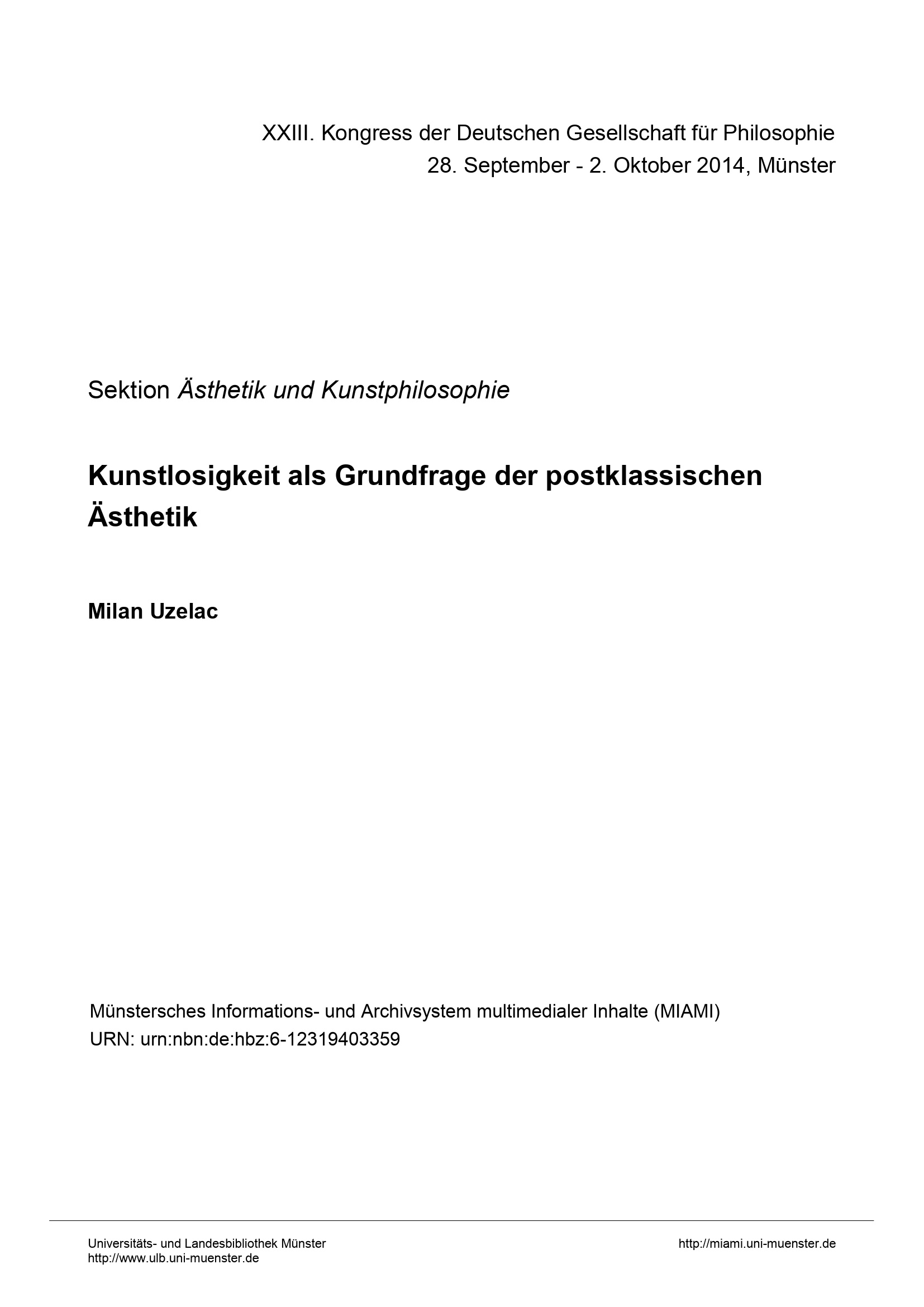 Kunstlosigkeit als Grundfrage der postklassischen Ästhetik