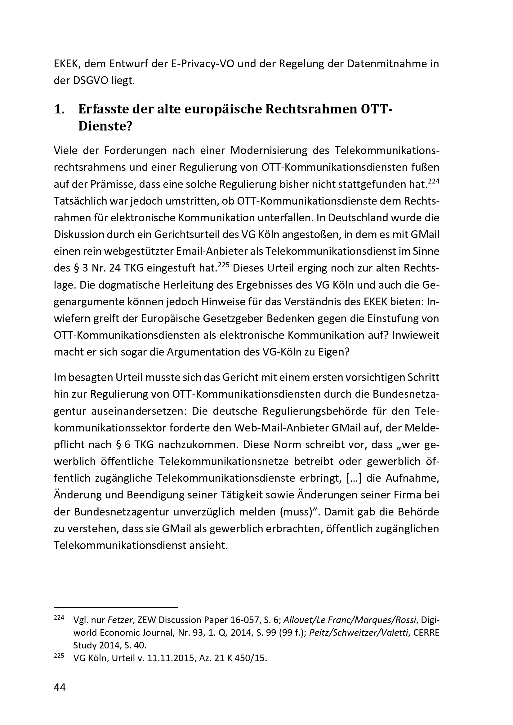 1. Erfasste der alte europäische Rechtsrahmen OTTDienste?