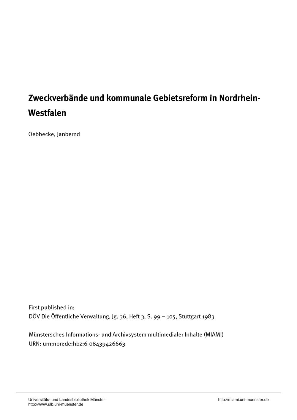 Zweckverbände und kommunale Gebietsreform in Nordrhein-Westfalen