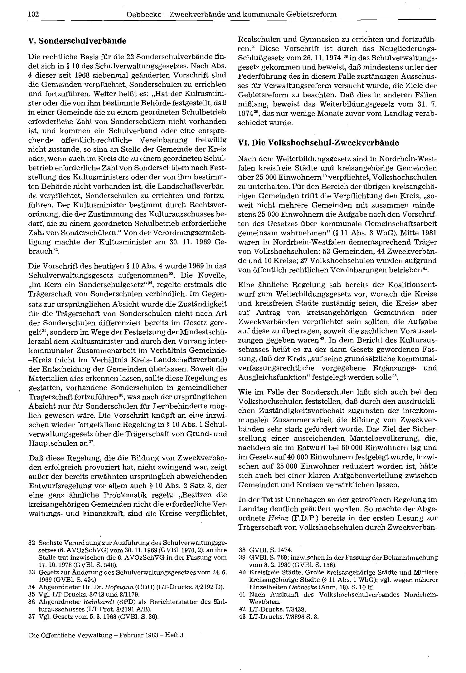 Zweckverbände und kommunale Gebietsreform in Nordrhein-Westfalen