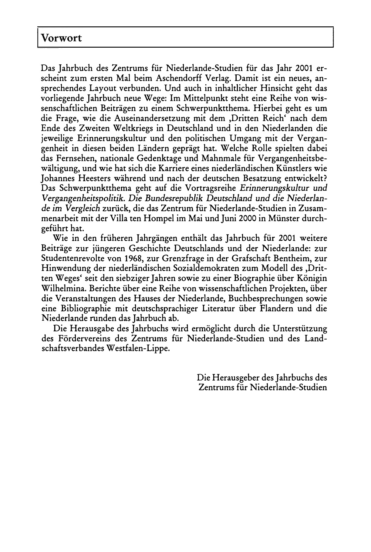 Vorwort : [in: Jahrbuch des Zentrums für Niederlande-Studien, 12.2001]