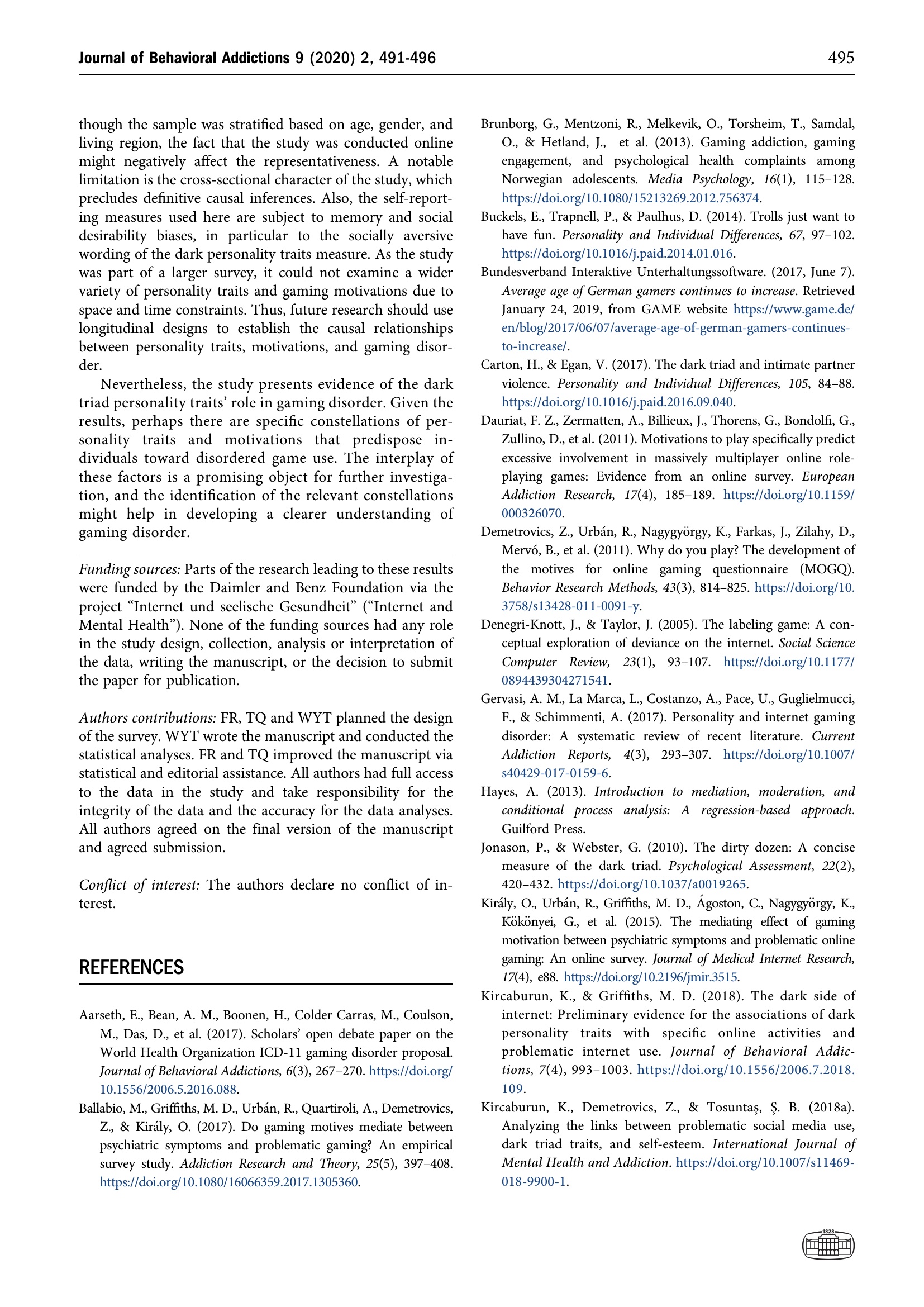 The interplay of gaming disorder, gaming motivations, and the dark triad