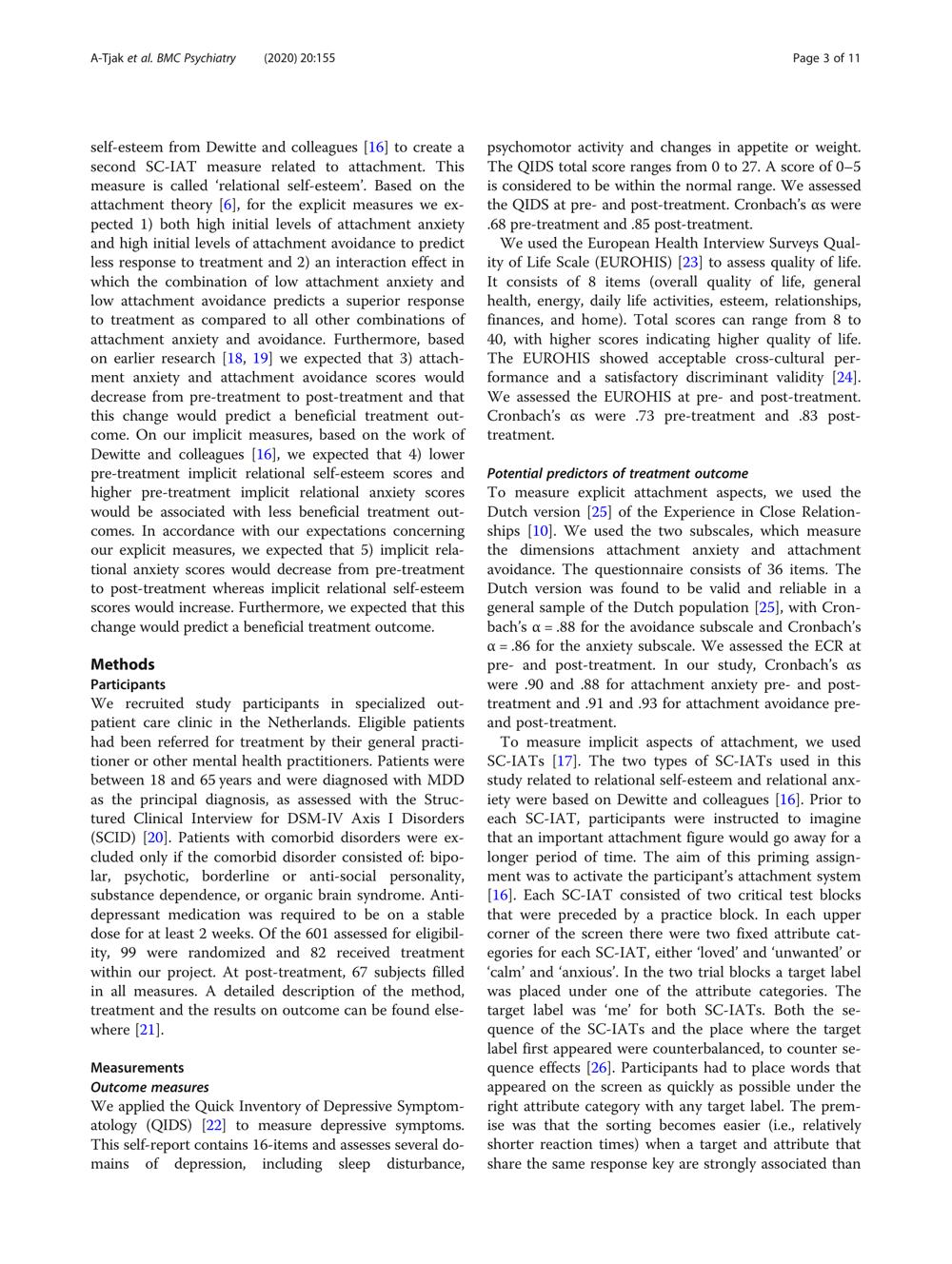 Explicit and implicit attachment and the outcomes of acceptance and commitment therapy and cognitive behavioral therapy for depression