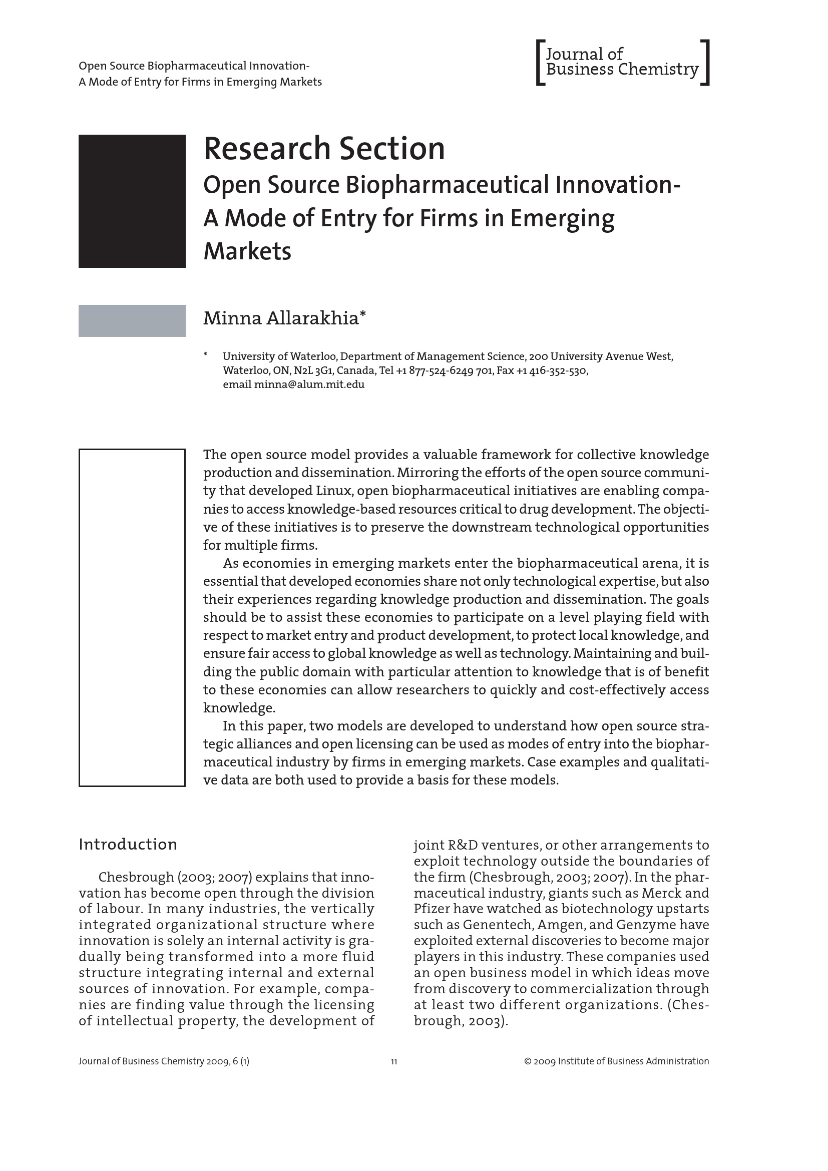 Open source biopharmaceutical innovation : a mode of entry for firms in emerging markets
