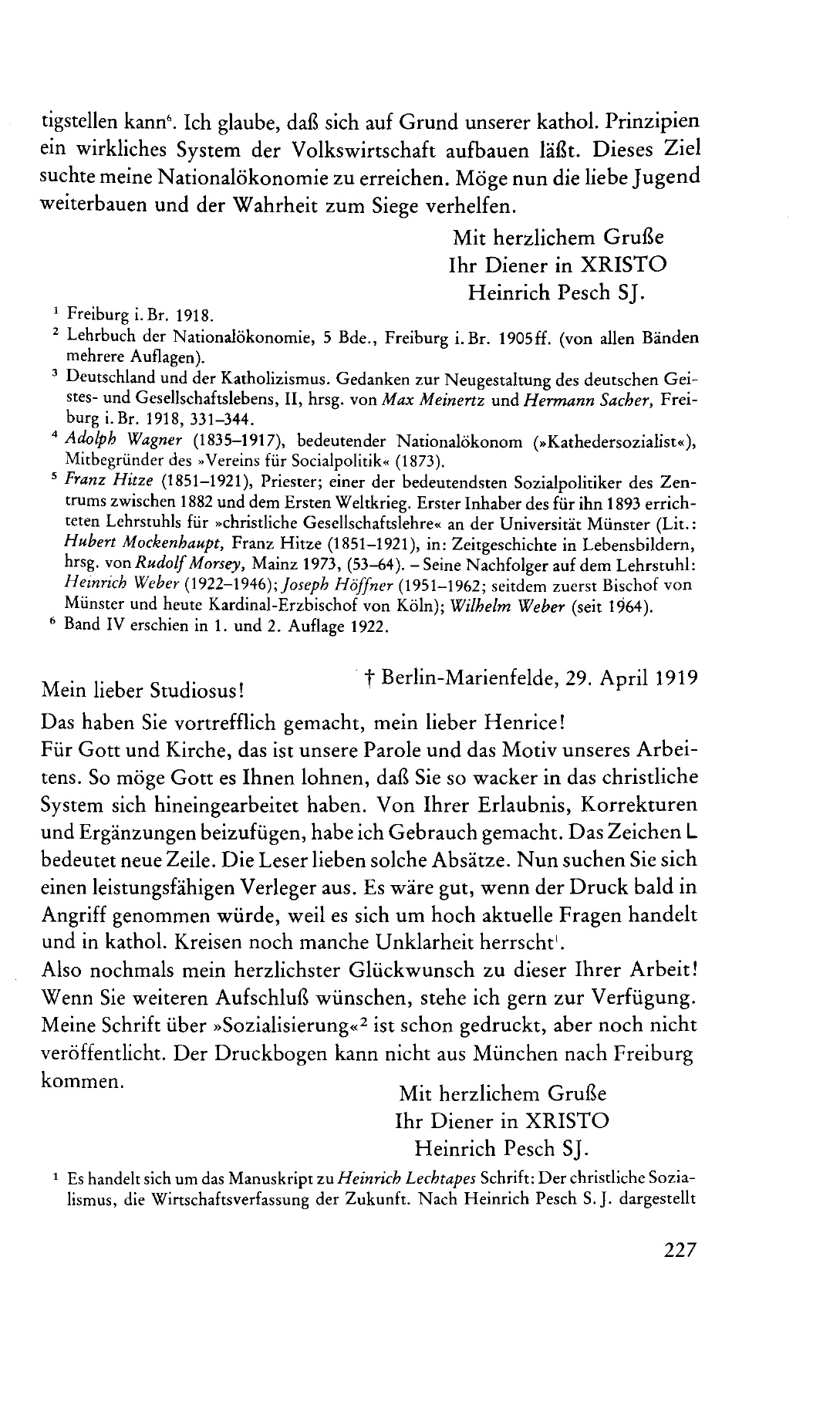Briefe von Heinrich Pesch S. J. an Heinrich Lechtape (1919-1926). Aus der Frühzeit des (christlichen) Solidarismus