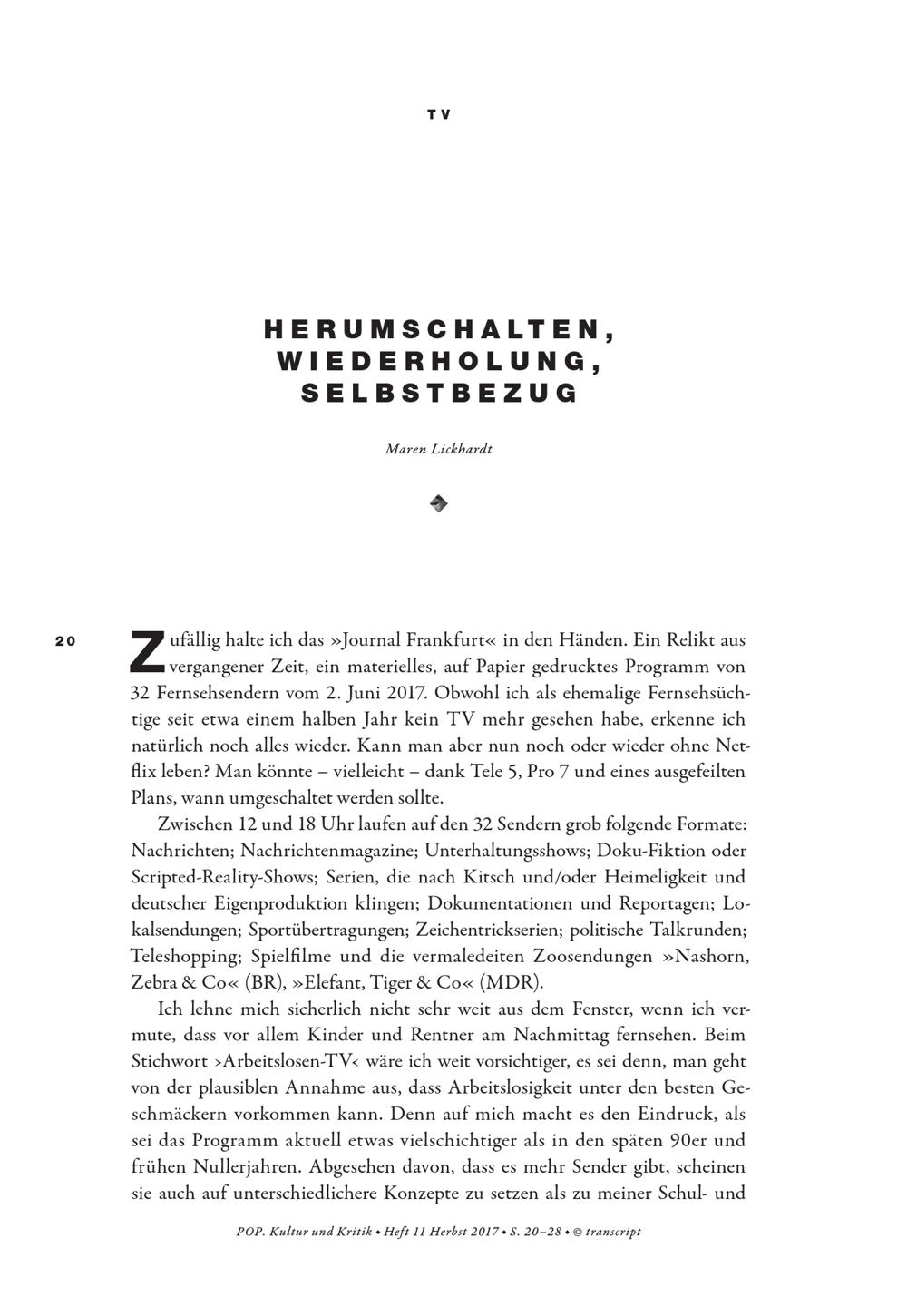 Herumschalten, Wiederholung, Selbstbezug