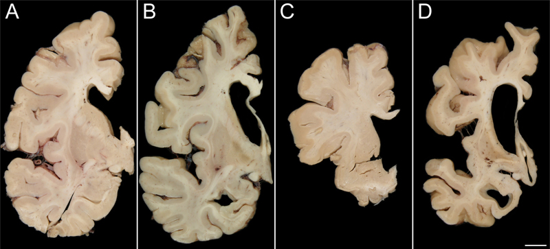 β Diffuse cytoplasmic FUS staining with mini-Pick body-like NCI Figure 1: Striatal atrophy on gross examination