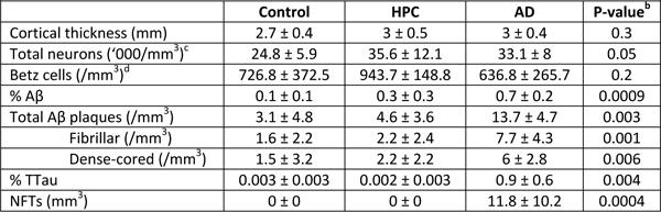 aMean ± standard deviation. Table 3. Regional neuropathological comparisonsa