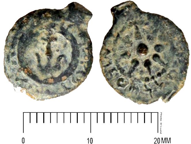 Two new variants in the depiction of the star for the TJC group L coins were recently discovered. The first variant depicts a star with five rays; one specimen of this type was discovered at Khirbet el-Maqatir[2] (0.61g, 5x7mm; fig. 1)[3] and a second is from a private collection (0.57g, 10x12.5mm; fig. 2)[4].